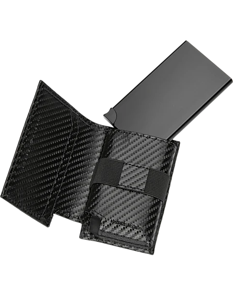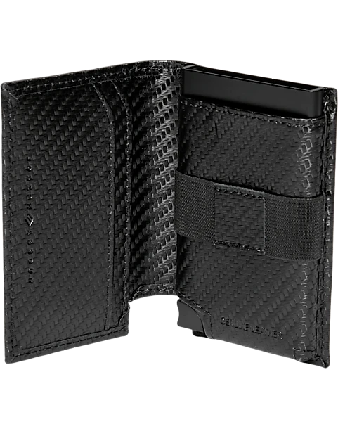 Both practical and fashionable, this slimfold credit card holder from Joseph Abboud secures your credit cards and personal items in a metal holder encased by a smooth leather cover.
