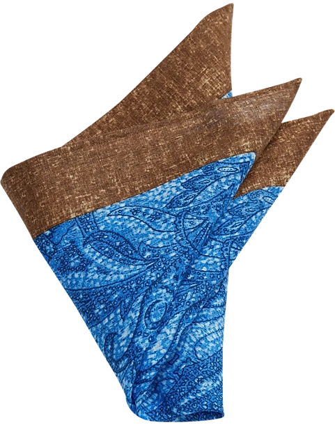 Joseph Abboud Linen Pocket Square, Brown & Blue Tie Dye Paisley