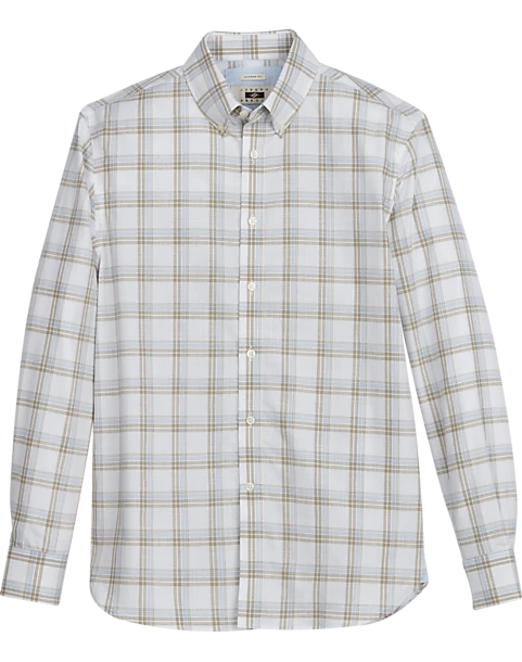 Joseph Abboud Modern Fit Short Sport Shirt, Olive Plaid