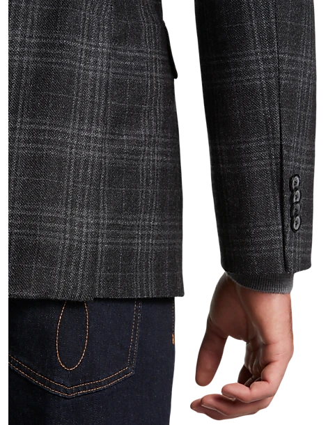 This handsome coat features a trim, Modern Fit and a classic charcoal plaid pattern. Woven in fine wool, it’s sure to become a cornerstone piece in your wardrobe.