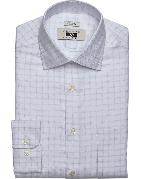Expertly tailored from crisp cotton, this dress shirt from Joseph Abboud brings a fresh perspective to your favorite ensembles. Modern Fit is close-fitting without being constricting through the chest, body, and sleeve. Recommended for more rectangular body types (shoulders aligned with hips, with the waist slightly smaller).
