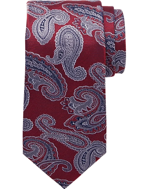 Joseph Abboud Narrow Tie, Burgundy & Gray Paisley