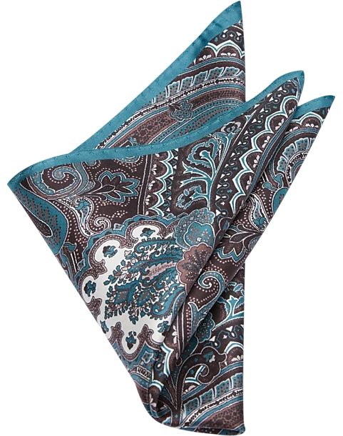 Joseph Abboud Pocket Square, Teal & Brown Paisley