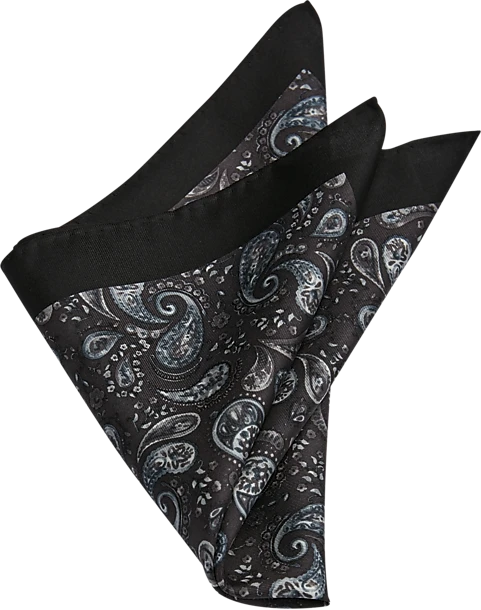 Joseph Abboud Silk Pocket Square, Black Paisley